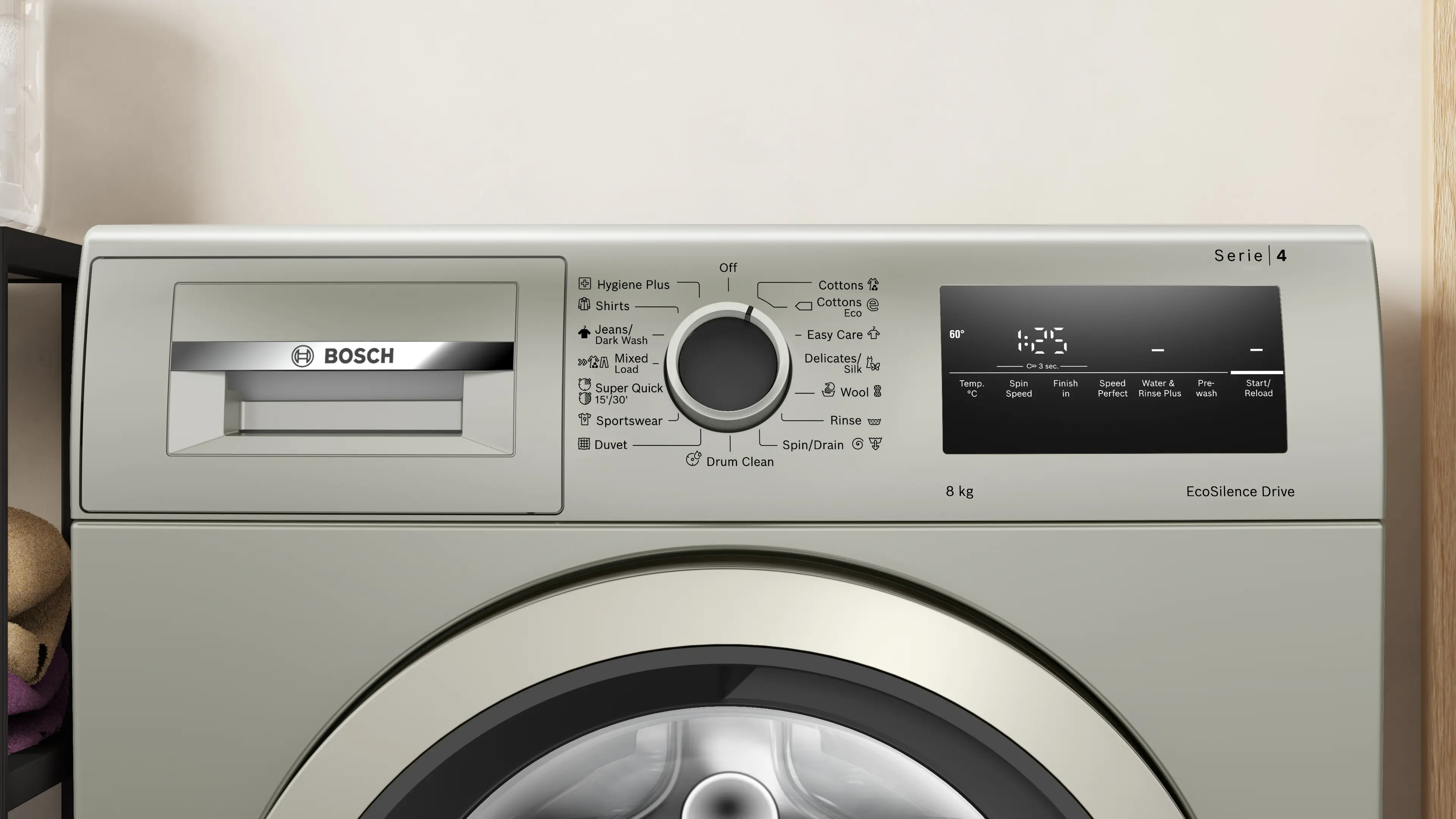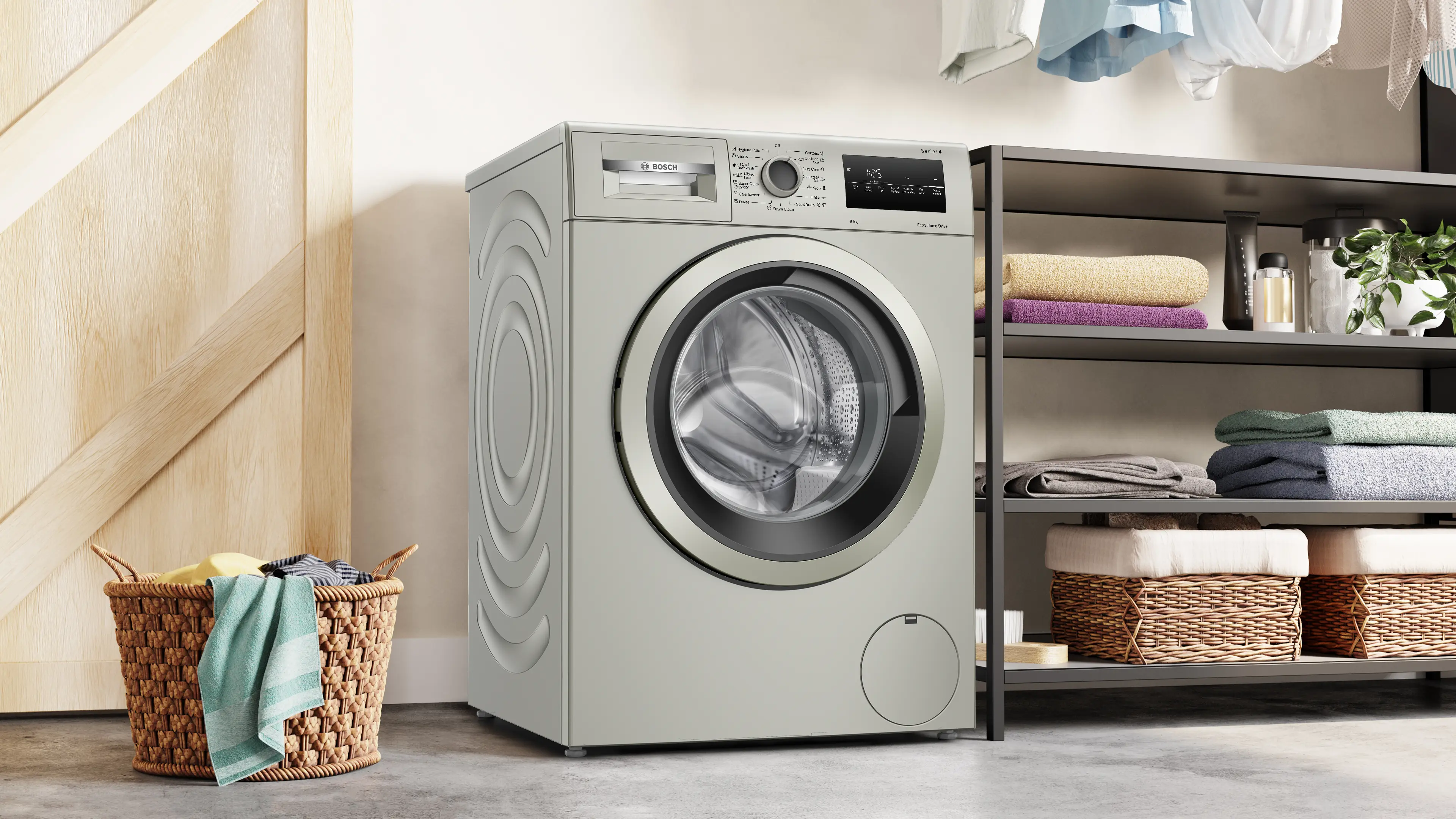 Série 4 lave-linge à chargement frontal 8 kg max. 1200 tr/min, Argent inox.WAN2420XME