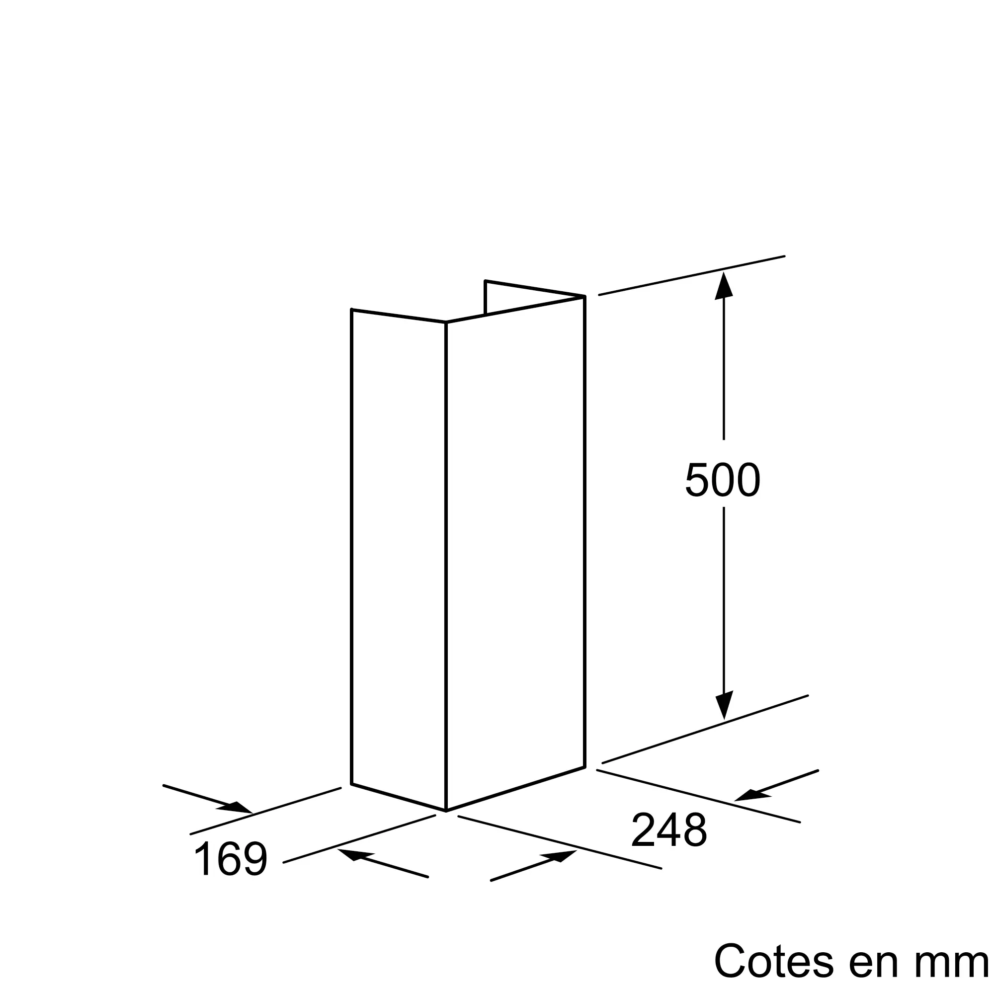 Extension de 500 mm (partie télescopique) pour mur de la cheminée de la hotte.