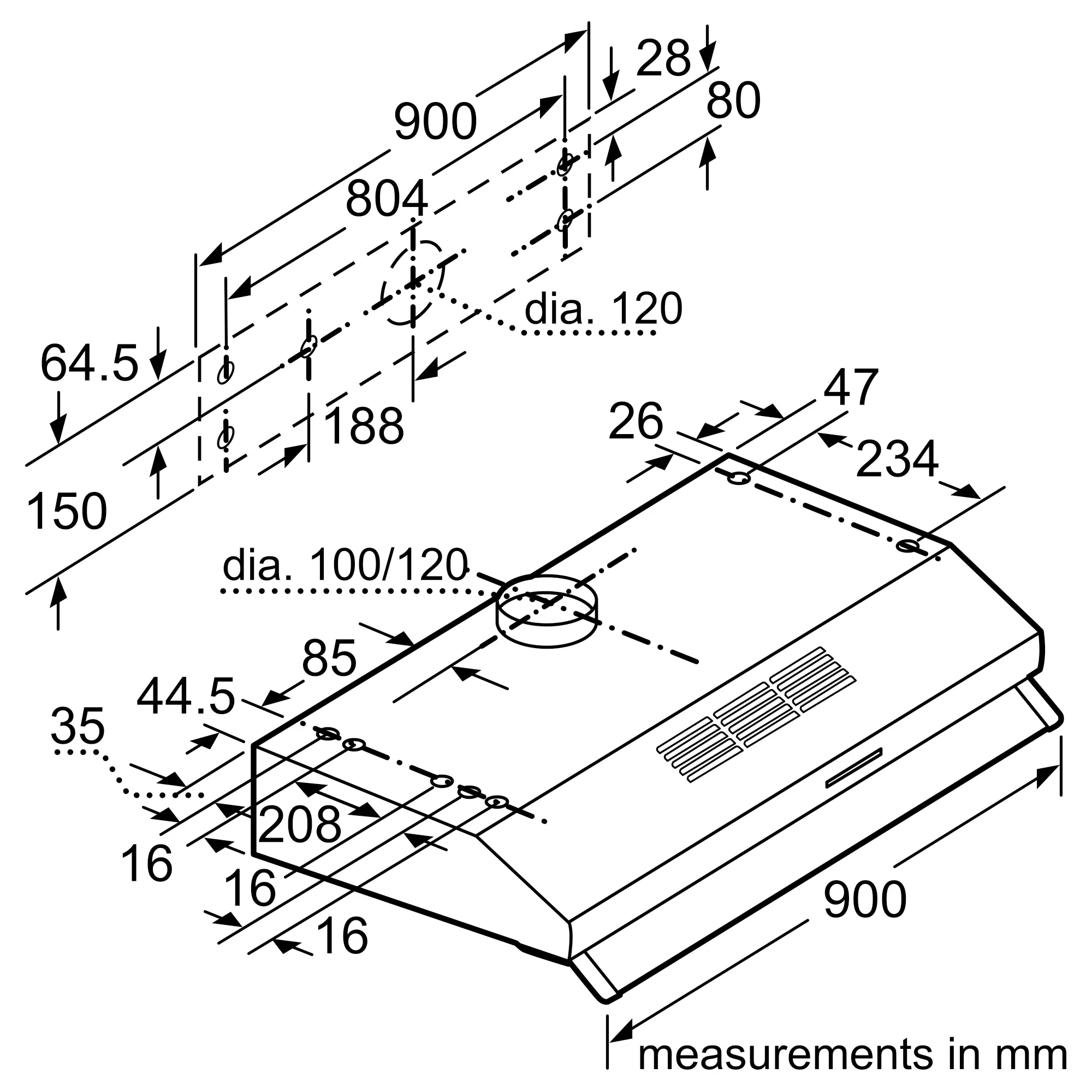 Série 2 hotte sous-encastrable 90 cm Acier inoxydableDUL93MA50M